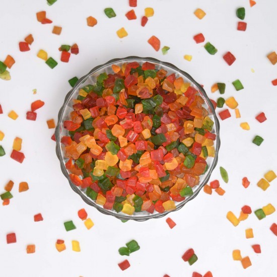 Enhance your recipes with Tutti Frutti 1kg, made from high-quality candied diced papaya cubes. These colourful, sweet cubes are specially prepared for baking and dessert use, adding rich flavour, soft texture, and visual appeal to a wide variety of recipes.