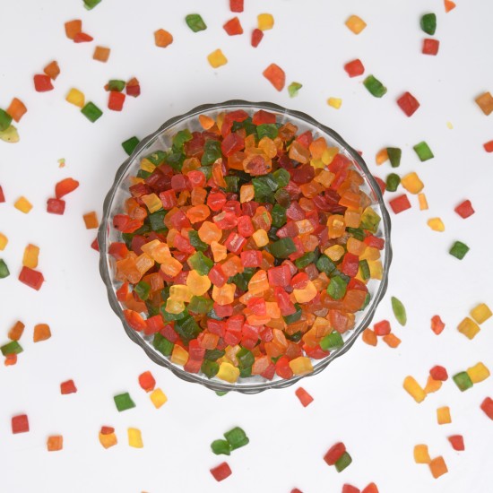 Enhance your recipes with Tutti Frutti 250g, made from high-quality candied diced papaya cubes. These colourful, sweet cubes are specially prepared for baking and dessert use, adding rich flavour, soft texture, and visual appeal to a wide variety of recipes.