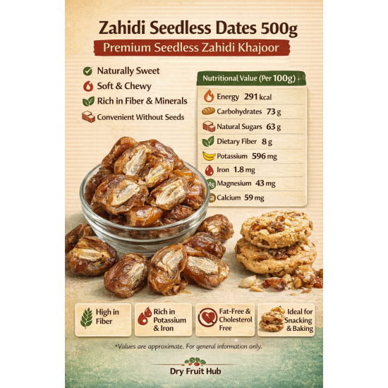 Choose Dry Fruit Hub Zahidi Seedless Dates 500g for premium quality, convenience, and authentic taste delivered fresh to your doorstep.