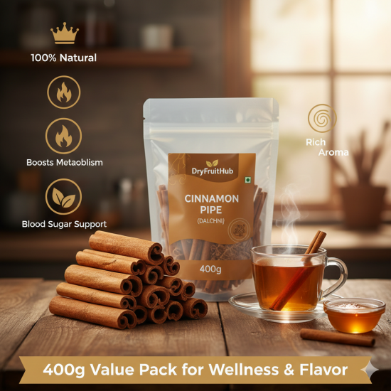 Our whole cinnamon sticks are ideal for slow cooking, where they gradually release flavor into dishes. Unlike powdered cinnamon, dalchini pipe retains freshness longer and offers better control over intensity. Dry Fruit Hub ensures that every cinnamon stick is clean, well-dried, and free from artificial additives or preservatives.