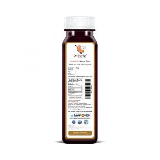At Dry Fruit Hub, we ensure our dates syrup online is hygienically processed and packed to retain freshness, taste, and nutritional value. Each bottle of dates syrup 450g is sealed properly to prevent leakage and maintain long shelf life. No artificial colors, no preservatives, and no refined sugar—just pure goodness of dates.