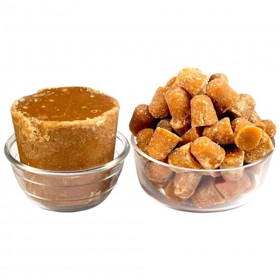 This pure cane jaggery is prepared using age-old methods where fresh sugarcane juice is slowly boiled and naturally solidified into convenient jaggery cubes, helping retain essential minerals and natural molasses. Unlike refined sugar, unrefined jaggery contains iron, calcium, potassium, magnesium, and antioxidants, which support digestion, energy levels, and overall wellness. The deep golden-brown color and earthy sweetness indicate genuine traditional gud quality.