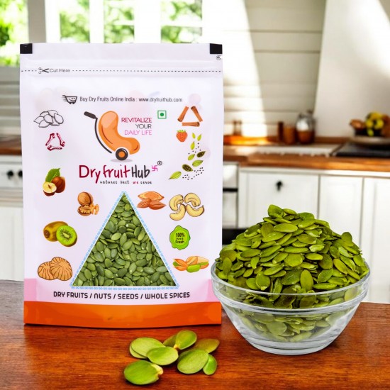 At Dry Fruit Hub, we source high-grade pumpkin seeds that are carefully cleaned and sorted to ensure uniform size and purity. These pumpkin seeds are 100% natural, free from artificial colors, preservatives, or additives, making them perfect for health-conscious individuals.